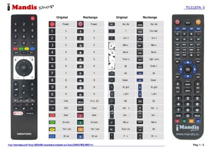 Un document est inclus pour vous aider à utiliser facilement la nouvelle télécommande, en indiquant la correspondance des boutons.