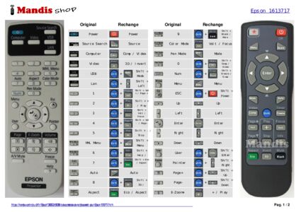 Accueil > Marques > Télécommandes Epson > Télécommande pour Epson 1613717