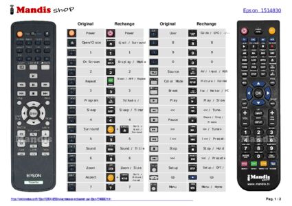 Accueil > Marques > Télécommandes Epson > Télécommande pour EPSON 1514830