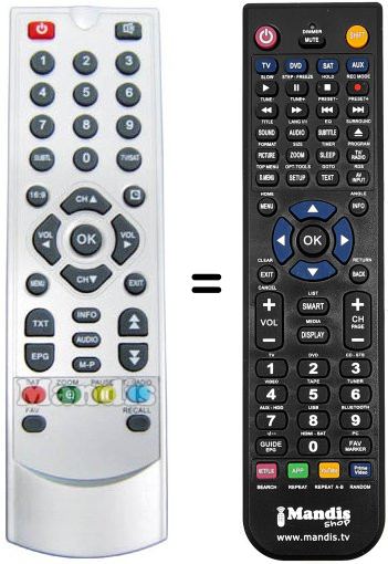 Télécommande qui remplace celle d'origine car elle possède les mêmes fonctions.