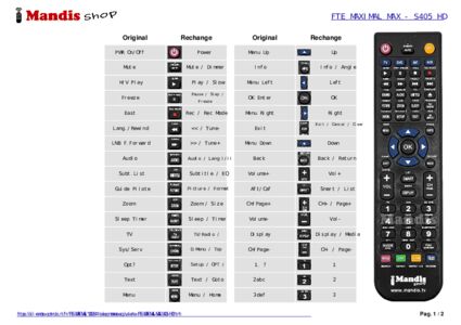 Un document est inclus pour vous aider à utiliser facilement la nouvelle télécommande, en indiquant la correspondance des boutons.