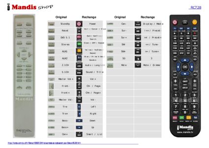 Un document est inclus pour vous aider à utiliser facilement la nouvelle télécommande, en indiquant la correspondance des boutons.