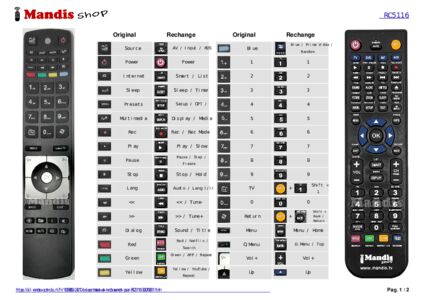 Un document est inclus pour vous aider à utiliser facilement la nouvelle télécommande, en indiquant la correspondance des boutons.