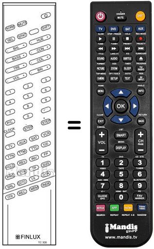 Télécommande qui remplace celle d'origine car elle possède les mêmes fonctions.