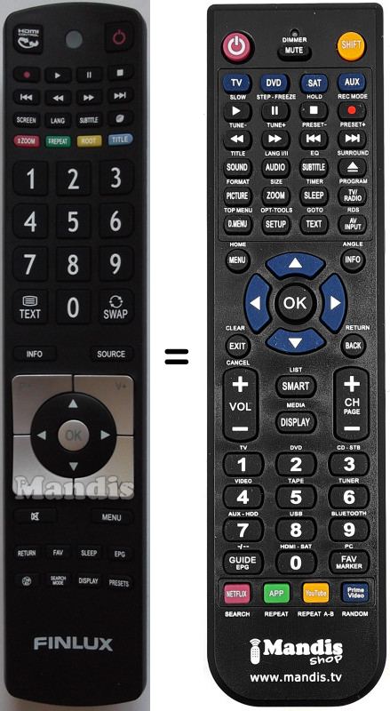 Télécommande qui remplace celle d'origine car elle possède les mêmes fonctions.