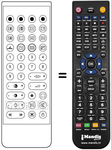 Télécommande qui remplace celle d'origine car elle possède les mêmes fonctions. Il ne s'agit pas d'une télécommande universelle mais d'une télécommande qui remplace celle d'origine. Vous recevrez la télécommande prête à fonctionner, vous n'aurez qu'à mettre les piles. Il n'est pas nécessaire de la programmer. Nous vous garantissons que la télécommande aura exactement les mêmes fonctions que celle d'origine.