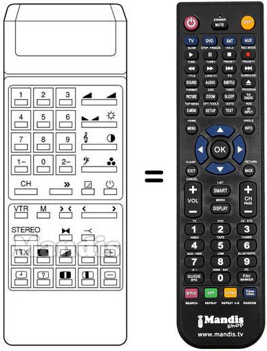 Télécommande qui remplace celle d'origine car elle possède les mêmes fonctions.