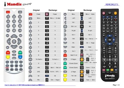 Un document est inclus pour vous aider à utiliser facilement la nouvelle télécommande, en indiquant la correspondance des boutons.
