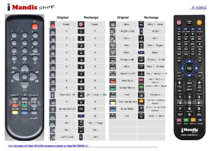 Cette télécommande remplace entièrement votre R-40A01 et offre toutes les fonctions de l'originale.