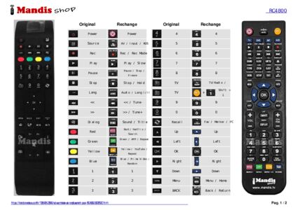 Un document est inclus pour vous aider à utiliser facilement la nouvelle télécommande, en indiquant la correspondance des boutons.