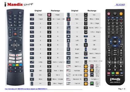 Un document est inclus pour vous aider à utiliser facilement la nouvelle télécommande, en indiquant la correspondance des boutons.
