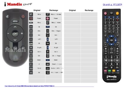 Accueil > Marques > Télécommandes Grundig > Télécommande pour GRUNDIG YF2187R (720117145400)