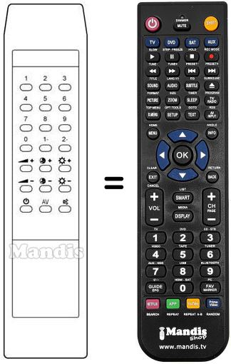 Télécommande qui remplace celle d'origine car elle possède les mêmes fonctions. Il ne s'agit pas d'une télécommande universelle mais d'une télécommande qui remplace celle d'origine. Vous recevrez la télécommande prête à fonctionner, vous n'aurez qu'à mettre les piles. Il n'est pas nécessaire de la programmer. Nous vous garantissons que la télécommande aura exactement les mêmes fonctions que celle d'origine.