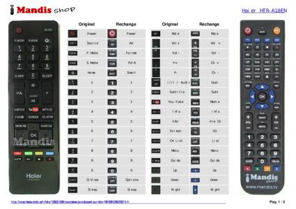 Un document est inclus pour vous aider à utiliser facilement la nouvelle télécommande, en indiquant la correspondance des boutons.