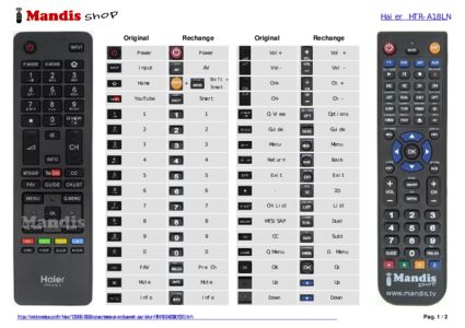 Un document est inclus pour vous aider à utiliser facilement la nouvelle télécommande, en indiquant la correspondance des boutons.