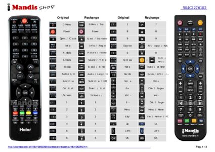 Un document est inclus pour vous aider à utiliser facilement la nouvelle télécommande, en indiquant la correspondance des boutons.