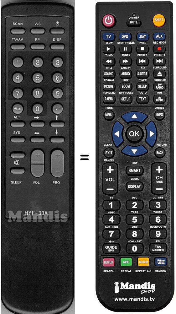 Télécommande qui remplace celle d'origine car elle possède les mêmes fonctions.