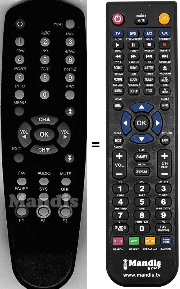 Télécommande qui remplace celle d'origine car elle possède les mêmes fonctions.