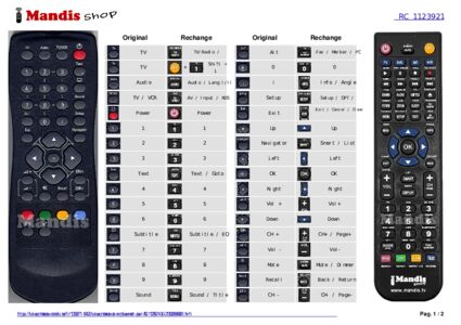 Un document est inclus pour vous aider à utiliser facilement la nouvelle télécommande, en indiquant la correspondance des boutons.