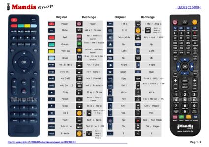 Cette télécommande remplace entièrement votre LED32C1600H et offre toutes les fonctions de l'originale.