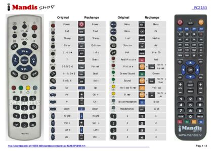 Un document est inclus pour vous aider à utiliser facilement la nouvelle télécommande, en indiquant la correspondance des boutons.