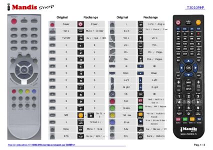 Un document est inclus pour vous aider à utiliser facilement la nouvelle télécommande, en indiquant la correspondance des boutons.