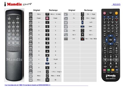 Cette télécommande remplace entièrement votre RC 0205 / 00 et offre toutes les fonctions de l'originale.