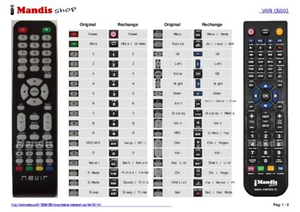Un document est inclus pour vous aider à utiliser facilement la nouvelle télécommande, en indiquant la correspondance des boutons.