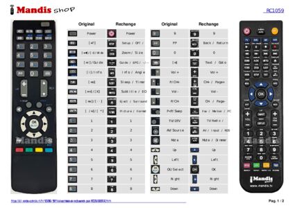 Un document est inclus pour vous aider à utiliser facilement la nouvelle télécommande, en indiquant la correspondance des boutons.
