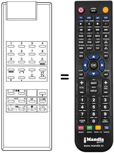 Télécommande qui remplace celle d'origine car elle possède les mêmes fonctions.