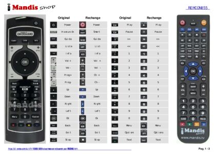 Un document est inclus pour vous aider à utiliser facilement la nouvelle télécommande, en indiquant la correspondance des boutons.