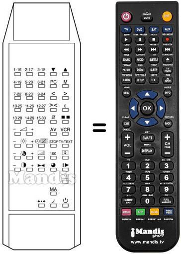 Télécommande qui remplace celle d'origine car elle possède les mêmes fonctions.