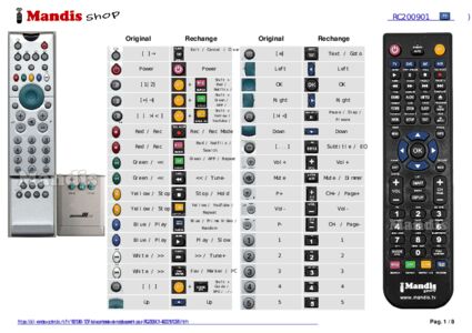 Un document est inclus pour vous aider à utiliser facilement la nouvelle télécommande, en indiquant la correspondance des boutons.