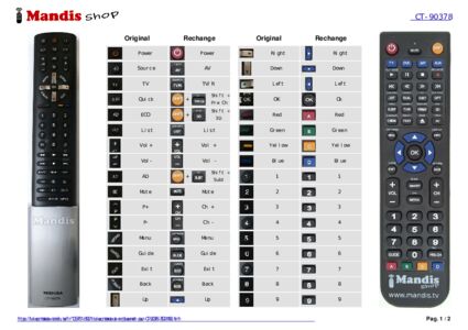 Cette télécommande remplace entièrement votre CT-90378 (75024199) et offre toutes les fonctions de l'originale.