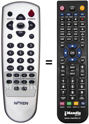 Télécommande qui remplace la télécommande d'origine REMCON463 car elle possède les mêmes fonctions.