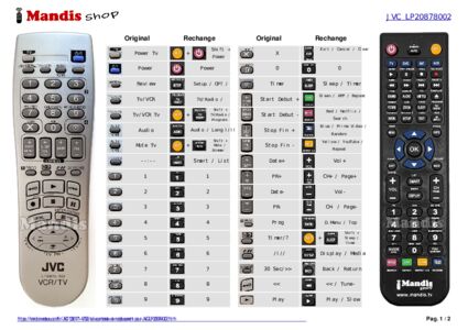 Un document est inclus pour vous aider à utiliser facilement la nouvelle télécommande, en indiquant la correspondance des boutons.
