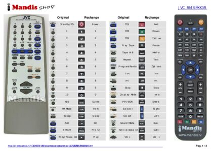 Un document est inclus pour vous aider à utiliser facilement la nouvelle télécommande, en indiquant la correspondance des boutons.
