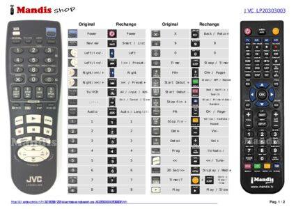 Un document est inclus pour vous aider à utiliser facilement la nouvelle télécommande, en indiquant la correspondance des boutons.