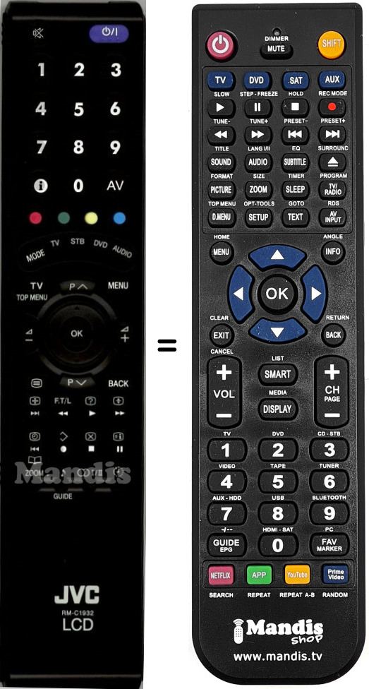 Télécommande qui remplace la télécommande d'origine RMC1932 (RMC19321C) car elle possède les mêmes fonctions.