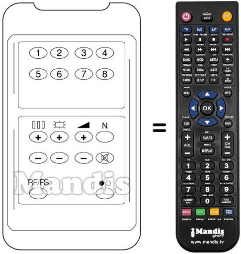 Télécommande qui remplace celle d'origine car elle possède les mêmes fonctions.