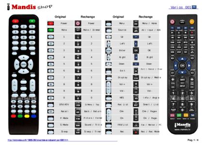 Un document est inclus pour vous aider à utiliser facilement la nouvelle télécommande, en indiquant la correspondance des boutons.