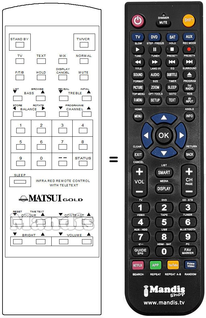 Télécommande qui remplace celle d'origine car elle possède les mêmes fonctions.