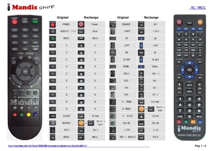 Un document est inclus pour vous aider à utiliser facilement la nouvelle télécommande, en indiquant la correspondance des boutons.