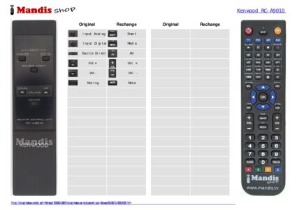 Un document est inclus pour vous aider à utiliser facilement la nouvelle télécommande, en indiquant la correspondance des boutons.