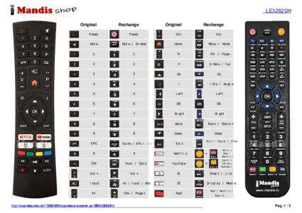 Un document est inclus pour vous aider à utiliser facilement la nouvelle télécommande, en indiquant la correspondance des boutons.