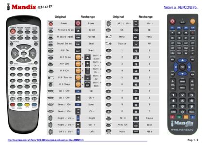 Un document est inclus pour vous aider à utiliser facilement la nouvelle télécommande, en indiquant la correspondance des boutons.