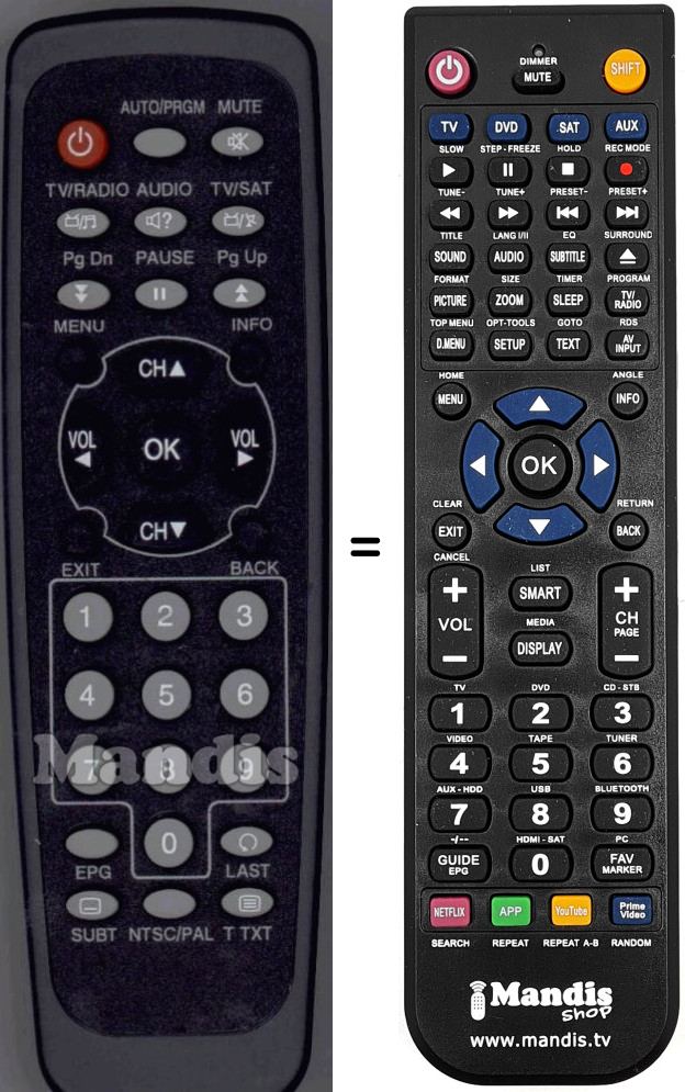 Télécommande qui remplace celle d'origine car elle possède les mêmes fonctions.