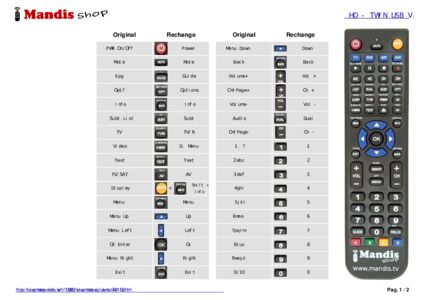 Un document est inclus pour vous aider à utiliser facilement la nouvelle télécommande, en indiquant la correspondance des boutons.