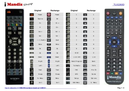 Un document est inclus pour vous aider à utiliser facilement la nouvelle télécommande, en indiquant la correspondance des boutons.
