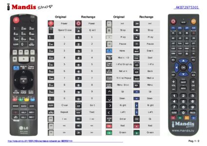 Un document est inclus pour vous aider à utiliser facilement la nouvelle télécommande, en indiquant la correspondance des boutons.
